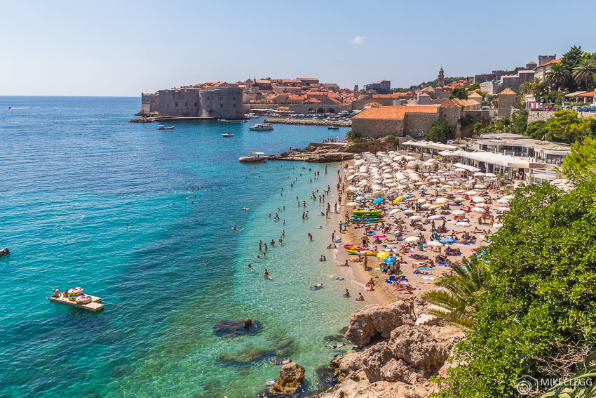 There are several beaches around the city with one of the most famous being Banje Beach. Here you can get beach shots with the Old Town in the background. While here you could take pictures from a low perspective such as near the rocks by the water, or you could take some pictures from the upper paths like below.