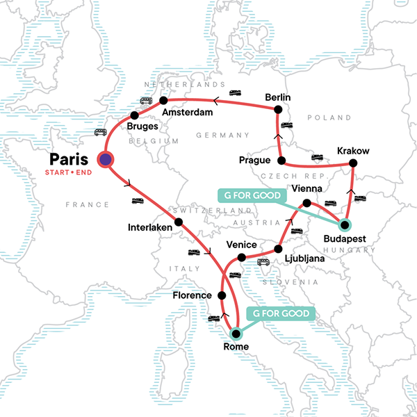- A central Europe route including Berlin, Prague, Vienna and Budapest