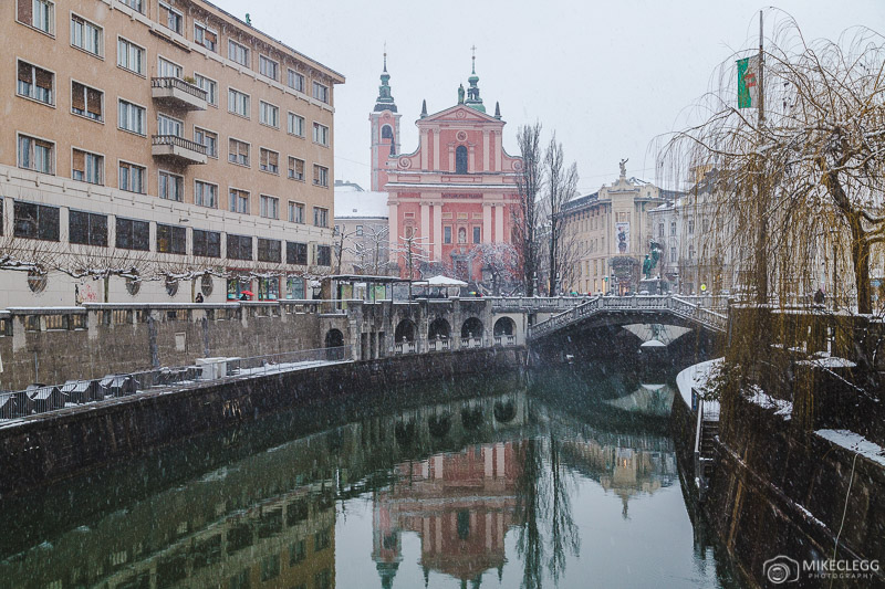 Ljubljana is the kind of city that you can easily walk around which makes taking pictures so much easier, as you can cover a lot in a short amount of time. A great starting spot is either at the Dragon Bridge along the east of the River or St James Bridge along the west. As you walk you’ll get to see Ljubljana Castle on the hill overlooking the city, which I felt when it was covered in snow looked quite magical.