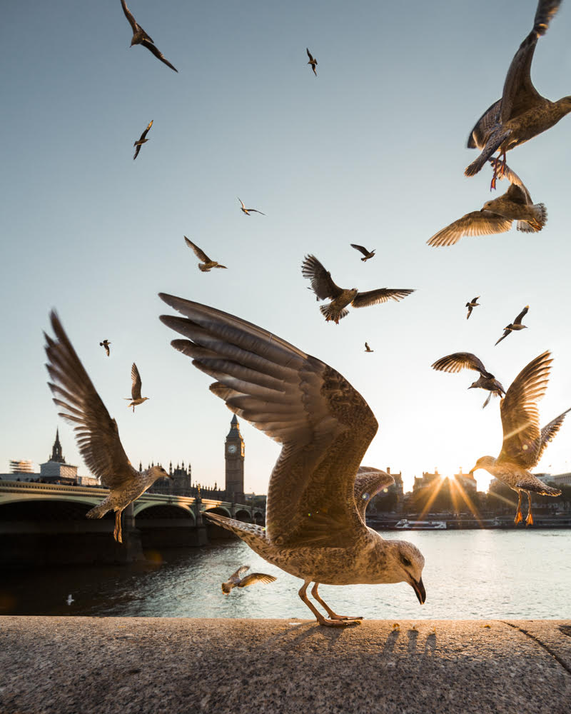 “It’s definitely this one here. The reason why I like it so much is because it was so spontaneous. I was setting up my zoom lens to get a nice sunset shot of Big Ben when that kid came running up throwing popcorn around. It got real hectic real fast so I immediately put on my wide-angle and kept firing my camera. (No seagulls were harmed in the making of this photo)”