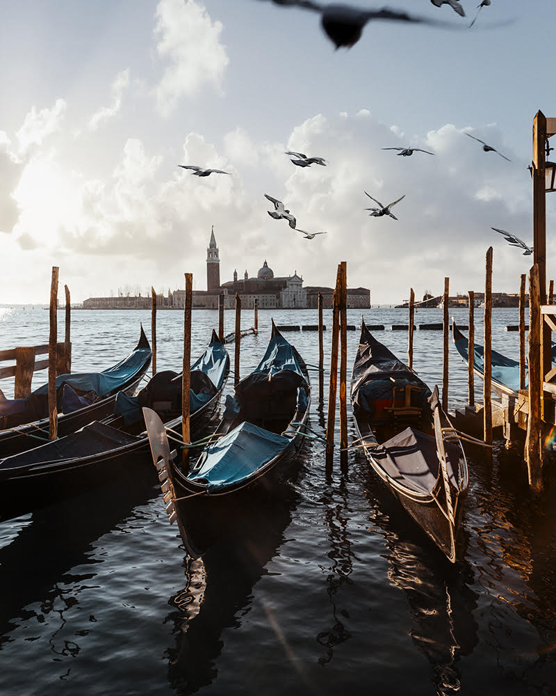“Venice gondolas: I love getting up early, listening to nothing but the birds chirp and take it all in without getting distracted by crowds of people and too much noise. Nothing beats being dazzled by the first light of the day!”