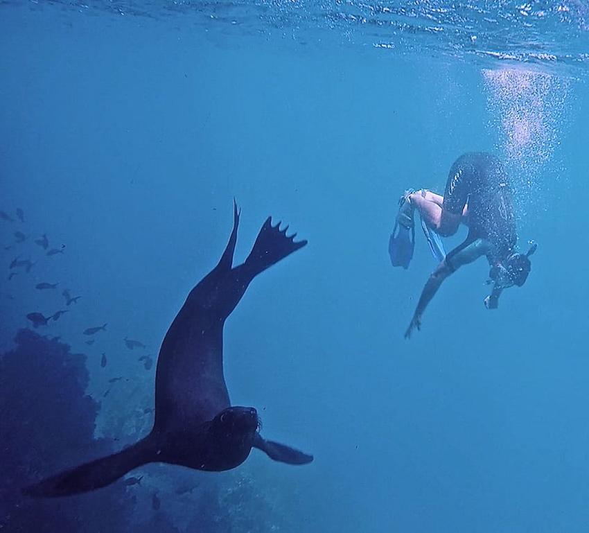 It’s not just above ground you get close to wildlife. There are many opportunities to go snorkelling and discover the rich underwater world surrounding the Galapagos Islands were reef sharks, manta rays, tropical fish and of course the many playful sea lions await you. For us, the sea lions completely stole the show. Their curious and playful nature will completely charm the pants off you. They love to pose, are totally unafraid, noisy and highly entertaining.