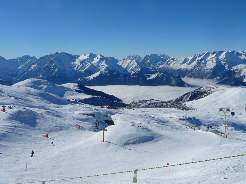 Les 2 Alpes is in the Oisans part of the Alps and has 425 hectares of ski pistes, which includes 17 green, 45 blue, 22 red and 12 black runs. It also has one of the best snowparks in Europe as well as a halfpipe, two boardercross parks and other facilities.